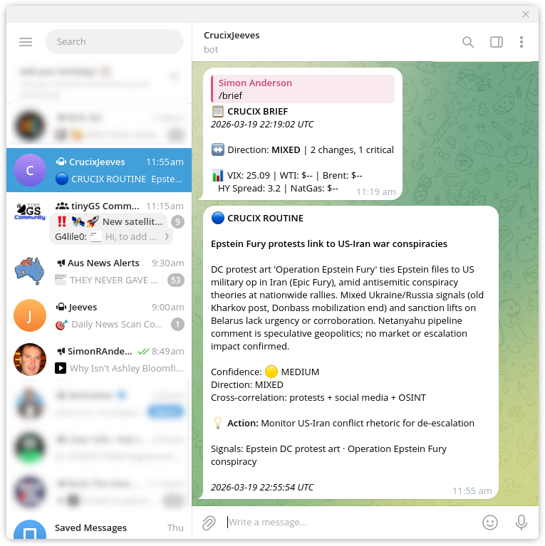 Crucix is performing these evaluations in real time and if it thinks it’s urgent, notifies me.